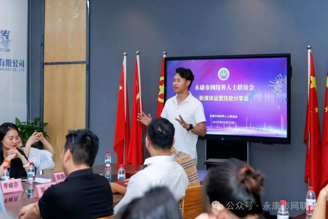 2025年5月15日,“新媒体运营技能分享会”在永康市总部中心“网络e家·同心荟”顺利开展。市网联会副会长施静静、林威武,监事长胡龙进及30余名骨干会员代表参加。会议由副会长兼秘书长李峻亦主持。