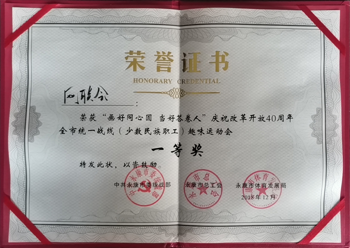 2019年永康市统一战线暨少数民族职工趣味运动会一等奖