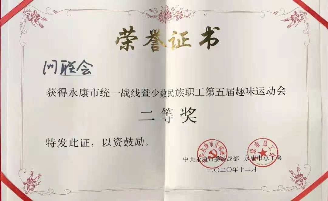 2020年永康市统一战线暨少数民族职工第五届趣味运动会二等奖